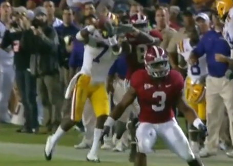 Now we have the Second Shooter of SEC Officiating Conspiracy Myths, "THE DAMNING DIVOT." This is not joking: the divot where Patrick Peterson dragged his foot is now the wandering bullet in this JFK assassination myth, and will fuel the fully insane assumption of a grand conspiracy propelling Alabama and Florida forward towards an inevitable SEC title game matchup. If sense and intelilgence desert you and let you think this is possible, consider this: even if LSU was given the ball back after the interception, Alabama would have had to wait two, possibly three passes before Jarrett Lee threw the game-winning TD. For Alabama.