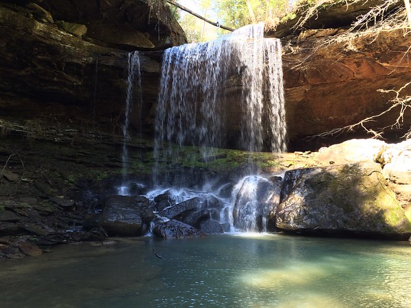 Sougdahoagee Falls, approximately 60 feet of water falling almost 50 feet. This creek was the boundary line between the Cherokees and the Creeks in the early 1800's.