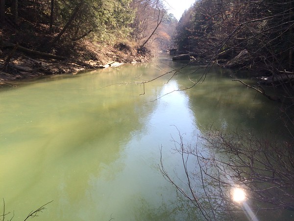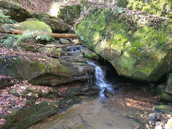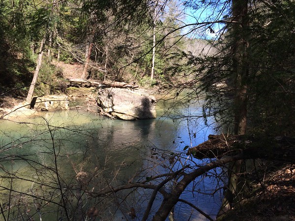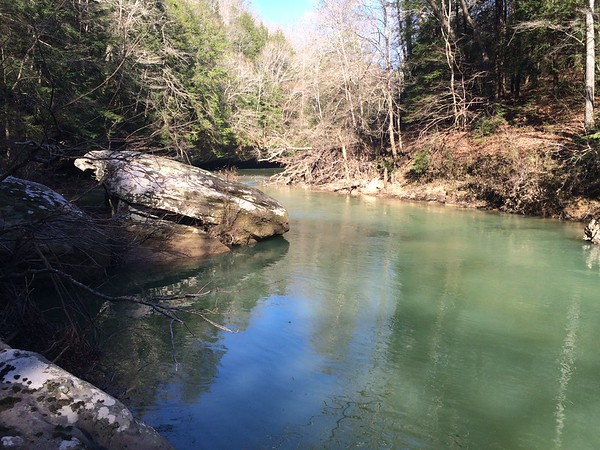 Brushy Creek, notice how high the water has been to have left that log on top of that boulder.